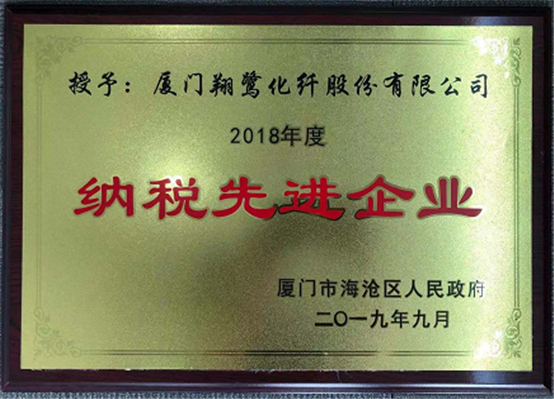 廈門翔鷺化纖股份有限公司榮獲“2018年度納稅先進企業(yè)”