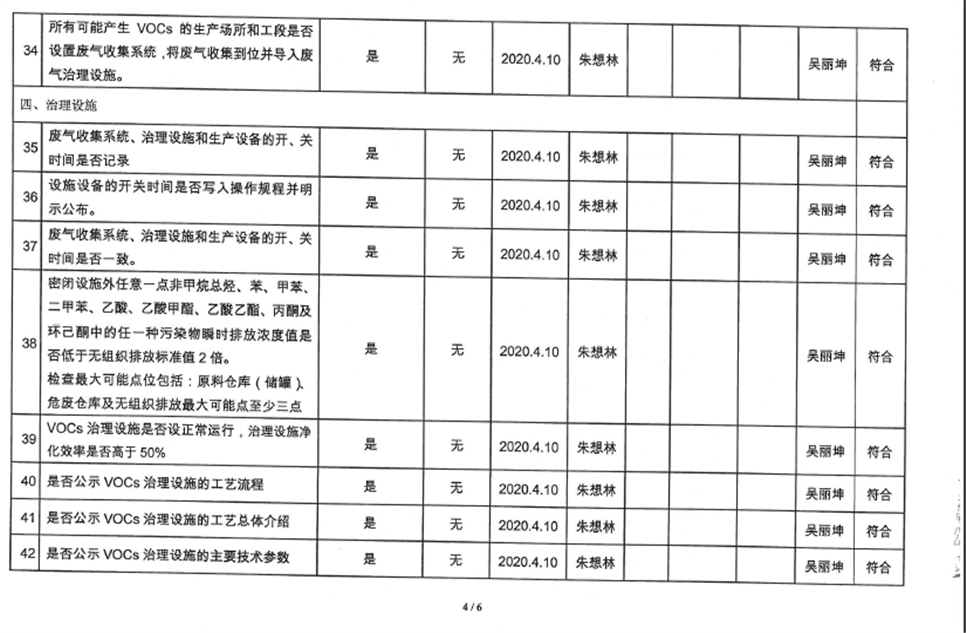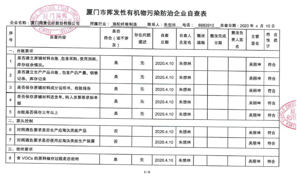 廈門市揮發(fā)性有機物污染防治企業(yè)自查表(2020年第一季度)