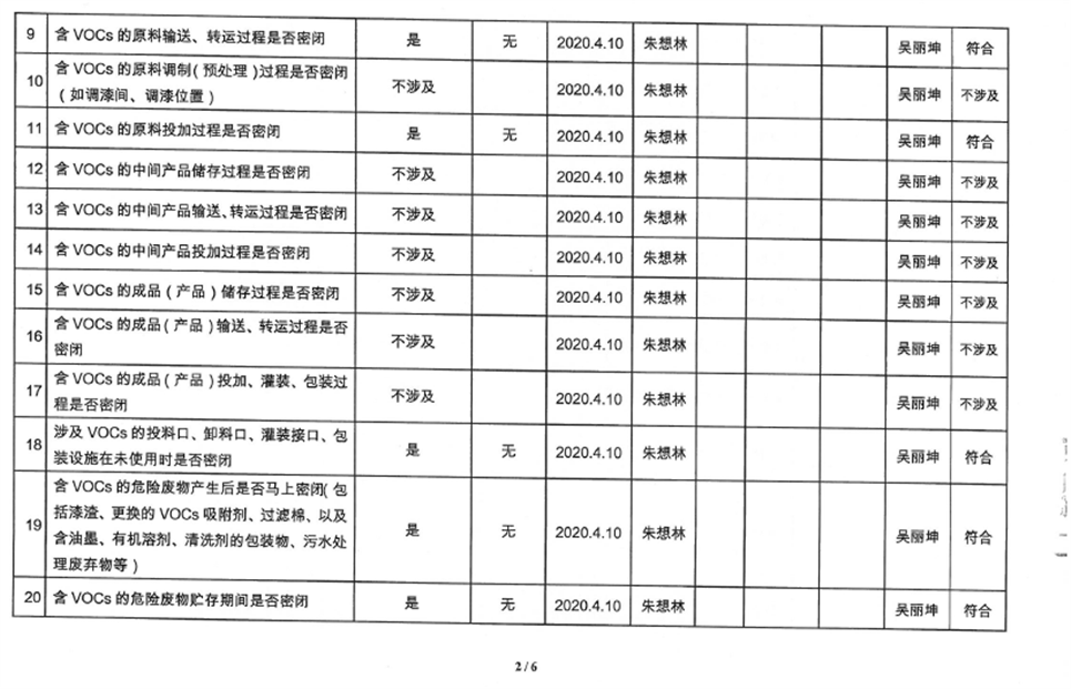 廈門市揮發(fā)性有機物污染防治企業(yè)自查表(2020年第二季度)