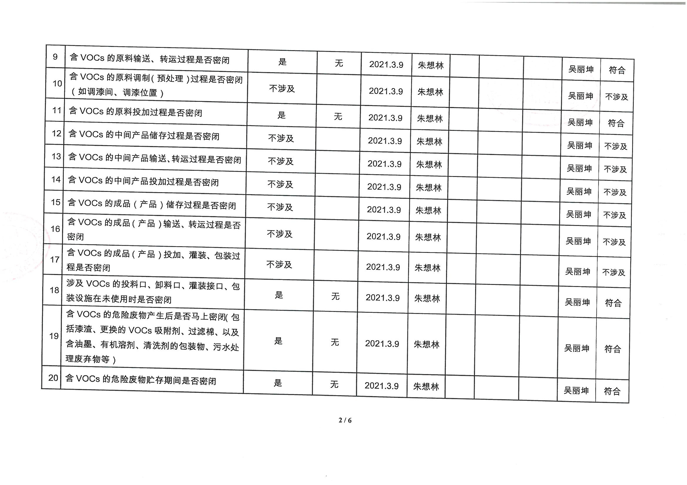 廈門(mén)市揮發(fā)性有機(jī)物污染防治企業(yè)自查表 (2021年 第一季度)